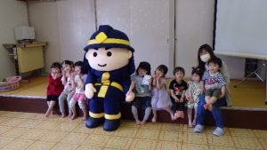 この行事は、毎年春の火災予防運動期間中に、園児の防火に対する意識向上を目的として、火の用心に関するDVDの上映や「火遊びは絶対にせず、火を使う時は大人と一緒に使いましょう」と呼び掛けを行うとともに、消防の仕事や避難時の大切な行動「お・は・し・も」についても分かりやすくお話しています。