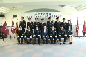 また、ニセコひらふ分団の浦野政廣分団長は、平均年齢が40代前半と比較的若い分団であると不安しつつも、「経験が少ない団員は、ベテラン団員からの技術の継承を確実に行い、強いチームワークで頑張っていきますよ。」と満面の笑みを浮かべました。