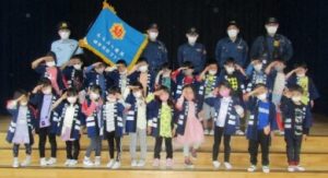 式では、署員から「みなさんも立派な幼年消防クラブの一員です。火遊びは絶対にしないのはもちろんのこと、家族の方にも火には気を付けるように伝えてください」とお話しすると、クラブ員達は「は~い!」と元気いっぱいの返事で応えてくれました。