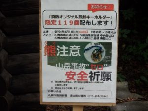札幌市南消防署(羽生勝利署長)では、8月11日(木)「山の日」にちなみ、山岳事故ゼロと安全を祈願し「消防オリジナル熊鈴キーホルダー」の配布を行いました。