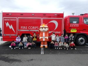 また、10月19日(水)に消防職員と消太4号が訪れた若草保育所では、職員から火災予防に関するお話の後、大人気の消太4号の周りに多くの子供たちが集まって来て、記念撮影をするなどして大変喜んでいました。