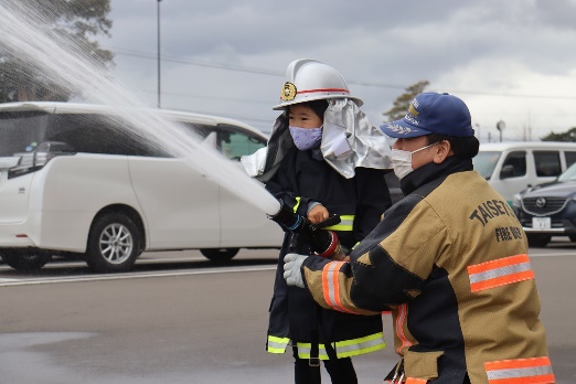 大雪消防組合当麻消防署(横田誠慈署長)では11月3日(木)、当麻町まとまーるで開催された当麻町生涯学習フェスティバル2022において、子ども用防火衣を着装しての消防車からの放水体験や水消火器の放水体験、また当麻消防署が主催する当麻町火災予防作文コンクールの入賞作品の展示などを行い、町民に対して防火のPRを実施しました。