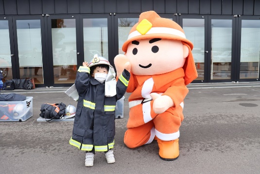 会場に登場した消太くん(4号)は子どもからの人気が強く、多くの子どもたちを集め記念撮影や放水体験を行いました。消太くんが、放水体験を実施していただいた方々に啓発物品の配布を行うことで、火災予防の意識や初期消火技術の向上の一助となり、子どもと一緒に来場した保護者の方を含め、来場された多くの方々への防火PRに大きく貢献しました。