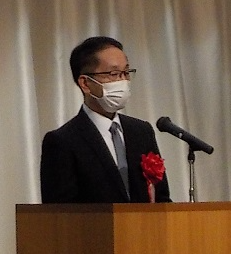祝賀会は、多数の来賓のほか消防職・団員及び名誉団員を含む54名が出席した中で、仁志団長の主催者挨拶ではじまり、花田了彰北海道消防協会会長、松野 哲岩見沢市長、上坂隆一月形町長からの祝辞、来賓紹介の後、中野孝司副団長の祝杯で開宴されました。