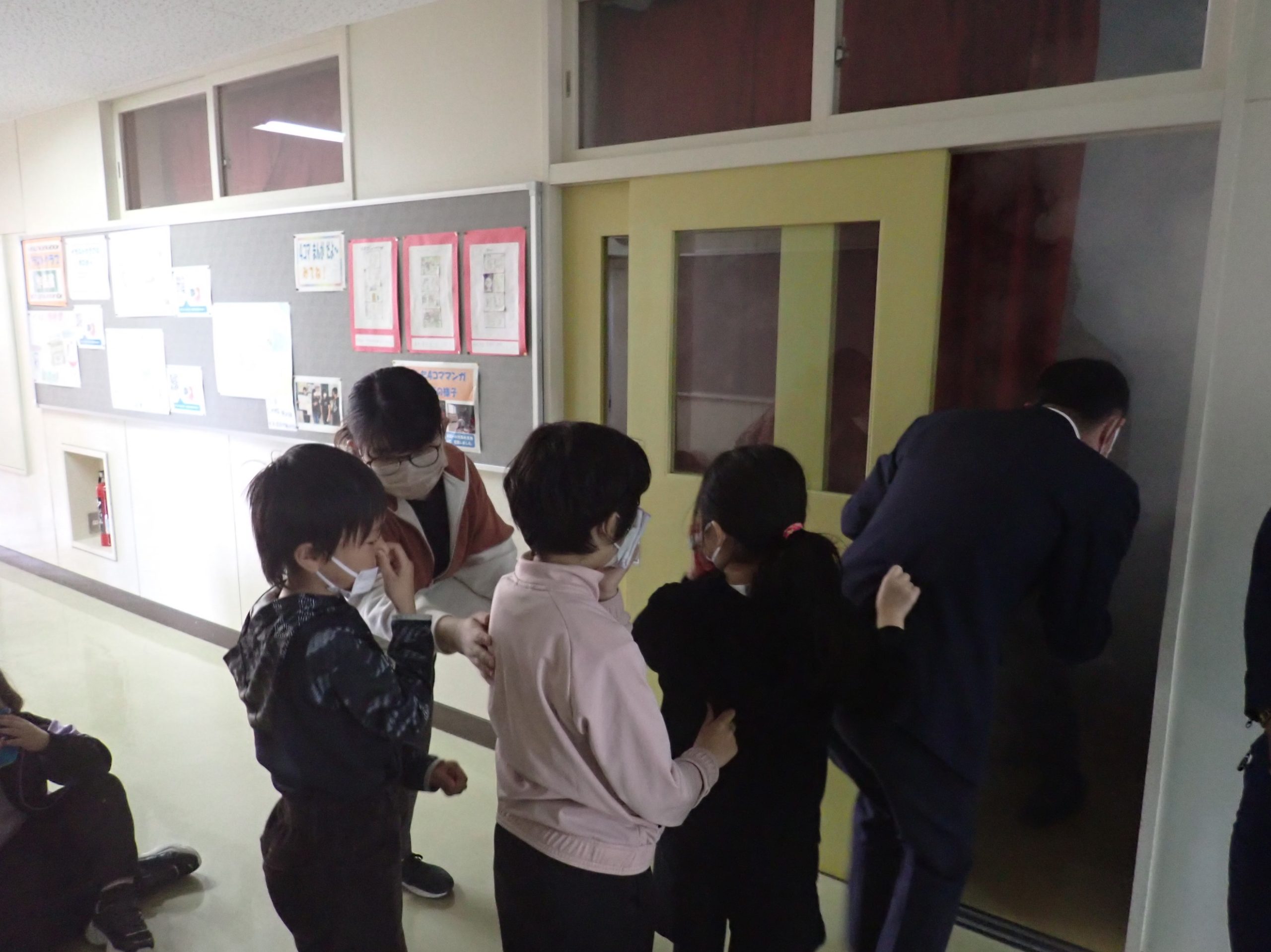 避難訓練終了後、4~6年生はスモーク体験で火災によって煙が発生した時の避難方法及び煙の恐ろしさを学び、1~3年生は煙の恐ろしさと避難のポイントを学ぶ防火DVDを鑑賞して、火災の恐ろしさと対処の仕方を理解する大変有意義な避難訓練となりました。
