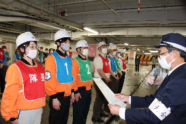 札幌地下街総合共同防火・防災管理協議会では5月26日(金)、札幌大通地下駐車場西側で大通、すすきの地区の自衛消防隊11隊が参加して、屋内消火栓消火技術訓練大会(小西正雄大会長)を開催しました。