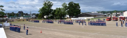 (公財)北海道消防協会オホーツク地方支部北見分会(村田潔司分会長)では6月18日(日)、美幌小学校グラウンドにおいて、北見分会内1市4町の消防団と2消防本部による第74回北見分会連合消防演習を実施しました。