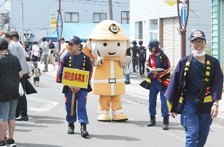 消防のマスコットキャラクター「消太2号」がお祭り会場内をパレードしたほか、ステージでは女性消防団員と消防団員募集の呼びかけを行い、入団を検討してくれる住民もいました。