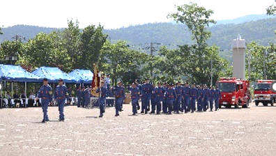 遠軽地区広域組合(佐々木修一管理者:遠軽町長)では7月9日(日)、佐呂間町体育館駐車場において、「第65回北海道消防協会オホーツク地方支部遠軽分会連合消防演習」を実施し、当組合3町(遠軽町、湧別町、佐呂間町)の消防団員総勢249名・車両21台が参加しました。