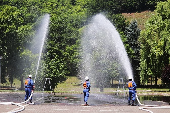 連合消防演習のうち消防訓練では、出場した各団の団結力・規律ある統制を身につけるための小隊訓練が行われ、続いて迅速・確実・安全に行動するために定められた消防用機械器具の取扱い及び操作の基本について、その技術を競う消防操法競技会では、小型ポンプ操法とポンプ車操法の2部門の操法訓練がそれぞれ行われ、武部 新衆議院議員をはじめ多くの来賓等の前で日頃の訓練成果を披露しました。