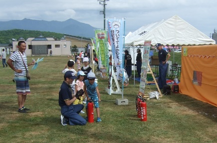 日高東部消防組合様似支署(菅原明浩支署長)では8月6日(日)、様似町ふれあい広場で開催されたアポイの火まつりにおいて、消防ブースを設けて様似支署職団員により消防のPR活動を展開しました。