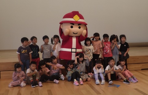 「ぼうさいダック」は、子供たちが体を動かし声をだして遊びながら防災などについて学び、安心・安全の「最初の一歩(ファースト・ムーブ)」を身につけるゲームで、今回は女性消防団員と署員が進行にあたり、園児36名が参加しました。