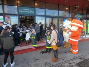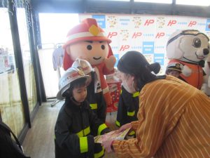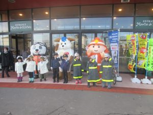 当日は、市内保育所の児童が防火服や警察署と海上保安部の制服を着用して、啓発用広報物品等を各機関のマスコットと一緒に配布するなど、多くの来店者の皆様に理解を深めてもらえる行事となりました。
