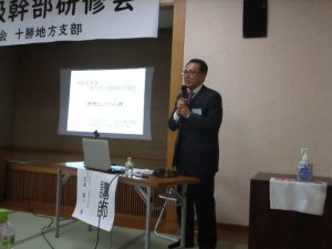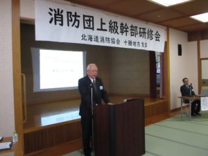 研修会は、大西米明副支部長(士幌消防団長)の挨拶後、(公財)北海道消防協会の佐藤賢一常務理事を講師にお招きして、『幹部としての心得』をテーマにご講義をいただき、幹部として必要なリーダーシップやマネジメントについての知識を深めることができました。
