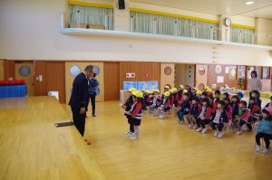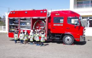 白老町消防本部では、4月19日(金)から順次、町内にある4つの保育園と1つの幼稚園の幼年消防クラブにおいて発会式を開催し、新園児を含めた145人のクラブ員が参加しました。