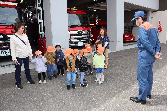 地元認定こども園の年少・年中・年長の40名の園児が、令和6年5月28日から30日の3日間、秩父別消防庁舎を見学に来ました。