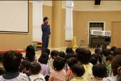 最後に職員より講話があり、「今日見た内容をお父さんやお母さんに話して家族全員で火事に気を付けること」のお願いに園児たちは「は~い!」と返事をして鑑賞会は終わりました。