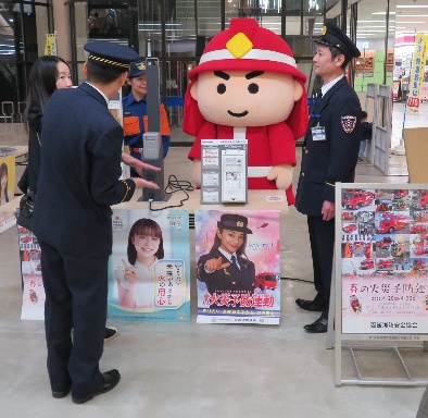 函館市消防本部では、令和7年4月18日(金)に市内の大型商業施設において、春の火災予防運動の一環として一日消防官をお招きし、火災予防広報を実施しました。