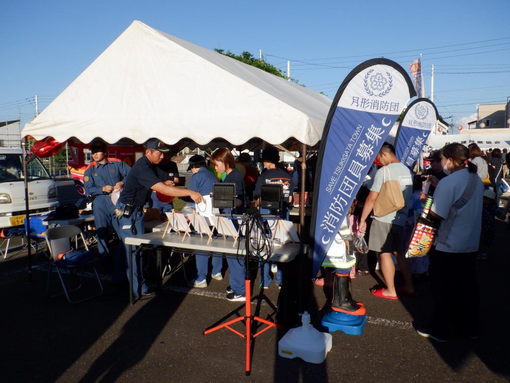 岩見沢地区消防事務組合月形支署では令和7年8月13日(水)月形町役場駐車場で行われた「つきがた町民盆踊り大会」に参加し、集まった約500人の町民に向けて消防団員募集PR活動を実施しました。