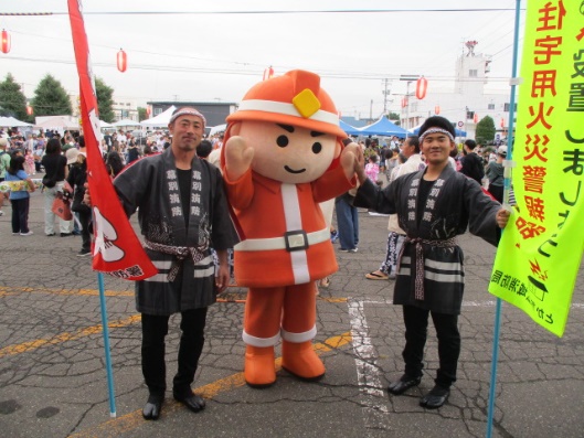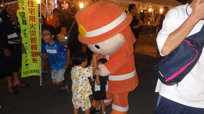 毎年8月に開催される本大会には、多くの町民が集まりました。消太くん(4号)は来場者から多くの注目と人気を集め、親子で記念撮影をするなど、消防PR活動や住宅用火災警報器の普及活動に貢献していました。