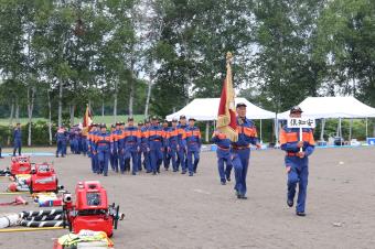 羊蹄山ろく7町村の消防団員が集い、厳正な規律の保持と迅速的確で秩序ある行動が求められる中、分列行進及び観閲、小隊訓練、小型ポンプ操法を実施し、日々の訓練成果が発揮されました。