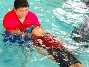 この訓練は、夏休みに入り水辺で遊ぶ機会が増えるこの時期、万が一水の事故に遭遇したときに、自分や仲間の身を守るための知識・技術を身に着けることを目的としています。JSSスイミングスクール清田の協力のもと、札幌清田区少年消防クラブ協議会が主催しているもので、今年で17回目を迎えました。
