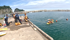 積丹支署に水難救助隊設置はありませんが、消防隊として可能な限りの救助活動を実施するため、平成24年よりライフセービング技術を基本に水面救助技術習得のほか、令和4年よりB&G財団防災拠点事業で配備された救助艇を活用し、沖に流された要救助者を救助艇により救出するなど活動の幅を広げています。