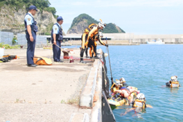 北後志消防組合積丹支署(播磨誠支署長)は7月14日(月)から16日(水)までの3日間、技術向上と余市警察署との連携強化を図ることを目的とした水難救助訓練を美国漁港で実施しました。