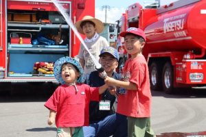 多くの来場者にお越しいただき、特に子どもたちが放水体験でホースを握って水を放つ様子は、楽しさと驚きが入り混じった表情でとても印象的でした。
