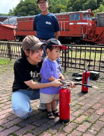 三笠市消防団(寺前輝義団長)では、令和7年8月9日(土)、市内の三笠鉄道村で実施されたイベント、夏の三笠鉄道村まつりにおいて、消防体験コーナーと消防団員募集PRを実施しました。
