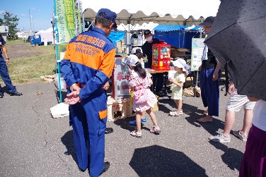 また、体験コーナー後には消防ガチャを使用した火災予防啓発グッズの配布など多くの来場者と交流しながら防火・防災へ繋げる有意義な広報活動となりました。