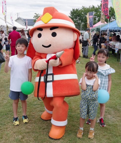 会場に登場した着ぐるみ「消太4号」は、多くの子どもたちと交流や記念撮影を行い大変好評を得ました。親子連れや祖父母など幅広い世代が防火の大切さに触れる機会となり、地域の安全意識向上に大きく貢献しました。