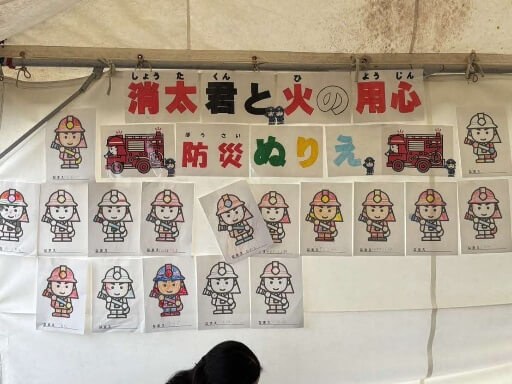 女性消防団員による、中標津牛乳の紙パックを再利用して作った消防車のおもちゃのプレゼントや防災ぬりえコーナーは、特に子ども達に大人気。ブース周辺は笑顔と元気な声でいっぱいになり、大賑わいとなりました。