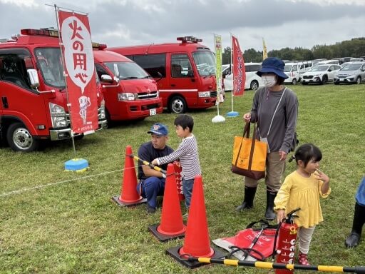 根室北部消防事務組合中標津消防団(蝦名団長)は、令和7年9月7日(日)に道立ゆめの森公園で開催された「第38回じゃがいも伯爵まつり」で、消防団PRブースを出展しました。ブースでは消防車両の展示や、訓練用消火器を使った消火体験を行い、子供から大人まで多くの来場者に楽しんでいただきました。
