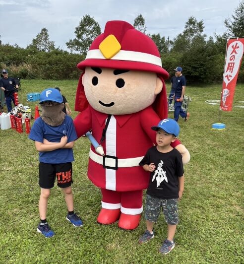 さらに会場には、消防団のマスコットキャラクター「消太6号」も登場!存在感たっぷりの姿で来場者の注目を集め、写真撮影や握手を求める人の列もできるほどの人気ぶりでした。そのおかげで消防団PRブースも多くの方でにぎわい、終始大盛況となりました。