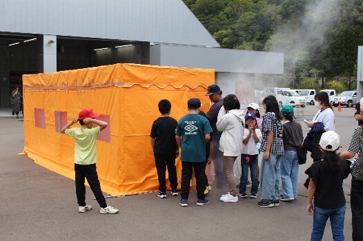 会場では消火体験や煙体験ハウス、ロープ渡過、応急手当の体験ブースのほか、消防車両の展示を行い来場者の関心を集めました。