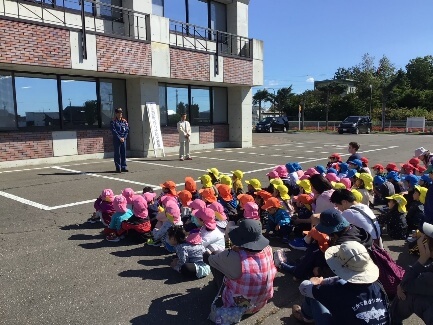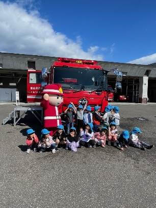 とかち広域消防局鹿追消防署(桑折琢也署長)では、令和7年9月22日(月)、町内認定こども園および瓜幕保育所の園児を消防署に招いて、「幼年消防ちびっ子防火教室」を実施しました。