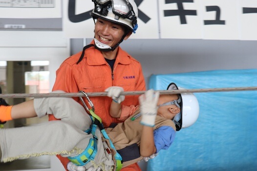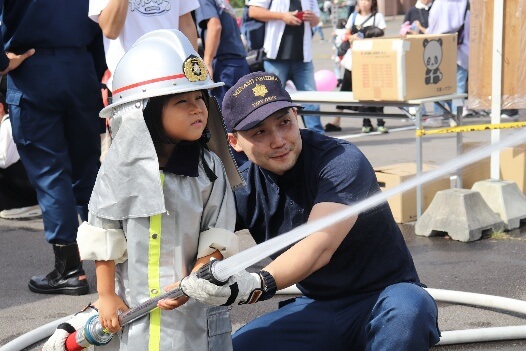 当日は、家族連れなど700人を超える大勢の住民が来場し、煙体験、レスキュー渡過体験、消防車からの放水体験、消防車の乗車体験及び救急手当体験が行われました。