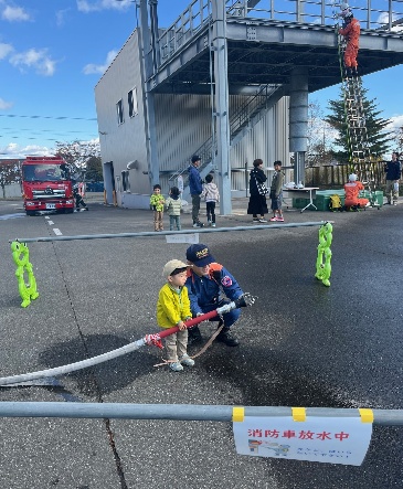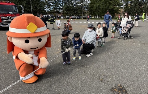 また、消太くんと協力して消防車との綱引き対決を実施し、盛大に盛り上がりました。