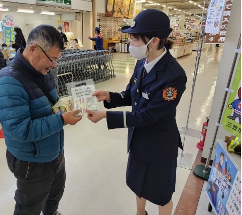三笠市消防本部(田川善幸消防長)と三笠市消防団(寺前輝義団長)では、11月16(日)、市内のイオンスーパーセンター三笠店において消防士体験・防災・交通安全イベントを開催し、来場者に対して消防団員募集PRを行いました。