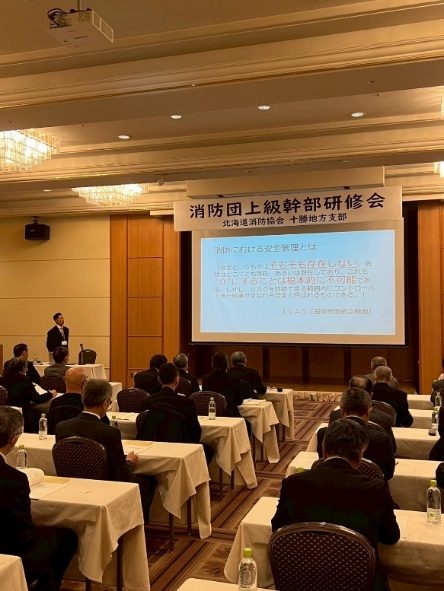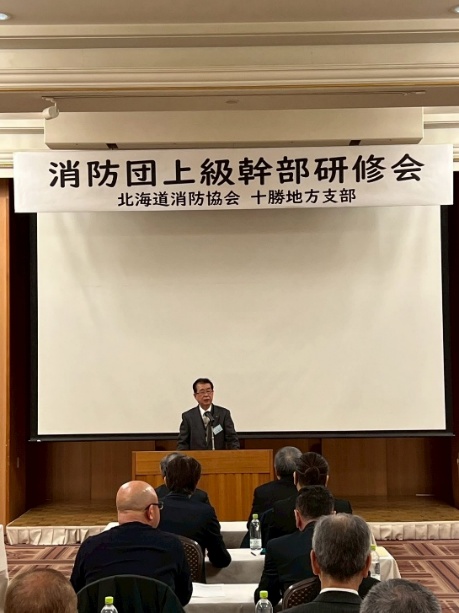 (公財)北海道消防協会十勝地方支部(宮坂寿文支部長:帯広市消防団長)では、令和8年2月6日(金)、帯広市内の「ホテルグランテラス帯広」において、十勝管内の正副団長を対象に「消防団上級幹部研修会」を実施しました。