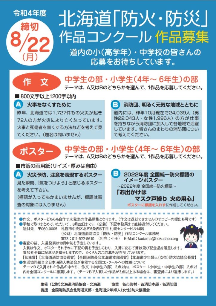 令和4年度「防火・防災」作品コンクールの応募を開始しました!小中学生の皆さまの作品のご応募をお待ちしております!