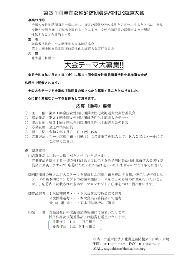 その大会テーマを全道の消防団員の皆さんから募集することとなりました。